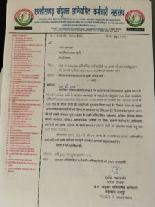 जिससे प्रदेश के लाखों कर्मचारियों को विष्णु के सुशासन पर विश्वास है। विधानसभा चुनाव 2023 के पूर्व हमारे संगठन द्वारा प्रदेश के सभी अनियमित, प्लेसमेंट, संविदा, दैनिक वेतन भोगी, मानदेय, जॉबदर, अंशकालिक, श्रमिक दर, ठेका, छटनी कर्मचारी/ अधिकारी साथियों को उनके परिवार के साथ भारतीय जनता पार्टी को समर्थन करने हेतु पत्र जारी किया गया था।