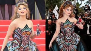 Cannes के रेड कारपेट पर उर्वशी रौतेला ने एंट्री ली एक ऐसे लुक में जिसे देखकर सबकी आंखें चौंधिया गईं। उन्होंने पहना था फिशटेल स्टाइल मल्टीकलर स्ट्रक्चर्ड गाउन, भारी ज्वेलरी, टियारा, और आंखों पर डार्क मेकअप। लेकिन शो स्टॉपर रहा उनका तोते के शेप वाला क्लच, जिसकी कीमत ₹4.68 लाख बताई जा रही है।