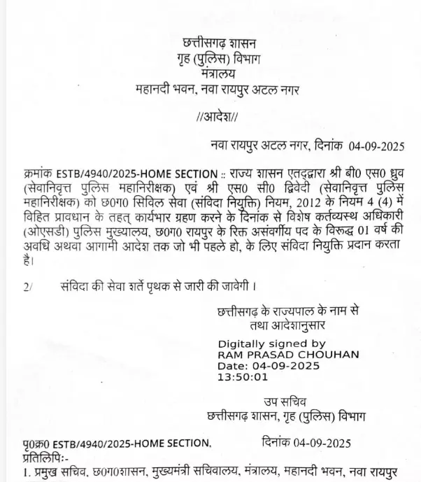 आदेश के मुताबिक संबंधित अधिकारी अब आगामी एक वर्ष तक अपनी सेवाएं संविदा आधार पर देंगे। शासन का यह निर्णय प्रशासनिक दृष्टि से अहम माना जा रहा है। सूत्रों का कहना है कि इस नियुक्ति से विभागीय कार्यों में निरंतरता बनी रहेगी और अनुभव का लाभ भी मिलेगा।