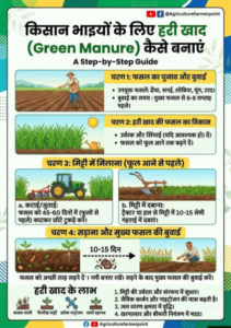 हरी खाद दलहनी फसलों जैसे ढैंचा, सनई, मूंग और लोबिया को उगाकर फूल आने से पहले ही खेत में मिलाने की प्रक्रिया है। इससे मिट्टी में जैविक पदार्थ और नाइट्रोजन की मात्रा बढ़ती है। यह प्रक्रिया मिट्टी की संरचना को बेहतर बनाती है और उसे लंबे समय तक उपजाऊ बनाए रखने में सहायक होती है।