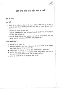 इसे देखते हुए सरकार ने सभी निकायों और जिला प्रशासन के लिए अभी से जरुरी निर्देश और एडवाइजरी जारी की है। इसमें निकायों और जिला प्रशासन को अभी से तैयारी करने का निर्देश दिया गया है। गर्मी से उत्पन्न बीमारियों से बचाव के लिए लोगों को सलाह दी गई है कि वे उच्च प्रोटीन युक्त भोजन न करें। हवादार जगहों पर रहें। प्यास नहीं लगने पर भी लोगों को पर्याप्त पानी पीना चाहिए।