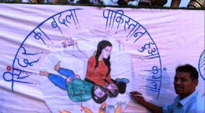 इस मार्मिक चित्र में एक नवविवाहिता को दर्शाया गया है, जिसकी शादी के महज छः दिन बाद ही उसका पति शहीद हो जाता है। सिंदूर से सजी मांग अब वीरान हो चुकी है, और आंखों से आंसू सूख चुके हैं, पर चेहरा आज भी देश के प्रति समर्पण की कहानी कह रहा है। पेंटिंग पर अंकित शब्द “सिंदूर का बदला पाकिस्तान हुआ कंगला” अब सोशल मीडिया पर राष्ट्रीय स्तर पर ट्रेंड कर रहा है और देशवासियों की भावनाओं को मुखरित कर रहा है।
