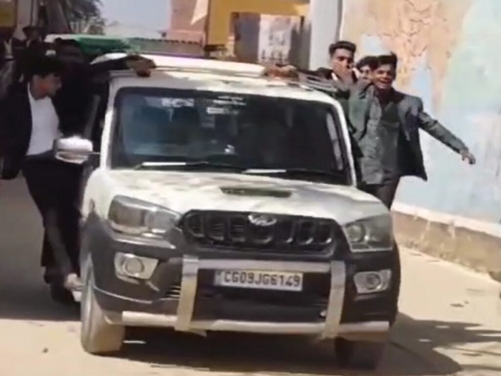 Farewell Party in Kawardha : फेयरवेल पार्टी में स्टंटबाजी! स्कॉर्पियो, बाइक और ट्रैक्टर पर छात्रों की खतरनाक एंट्री