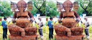 रायपुर। छत्तीसगढ़ के राजधानी रायपुर में इस बार भी गणपति बप्पा का अनोखा रुप देखने को मिल सकता हैं। यहां शहर में 11 हजार लॉकिंग प्लेट, बोल्ट,ऩट,वायसर और स्क्रैप मटेरियल से लोहे के गणेश जी बनाया जा रहा हैं। इस अनोखी कलाकृति को अशोक देवागंन की टीम के द्वारा तैयार किया जा रहा हैं।