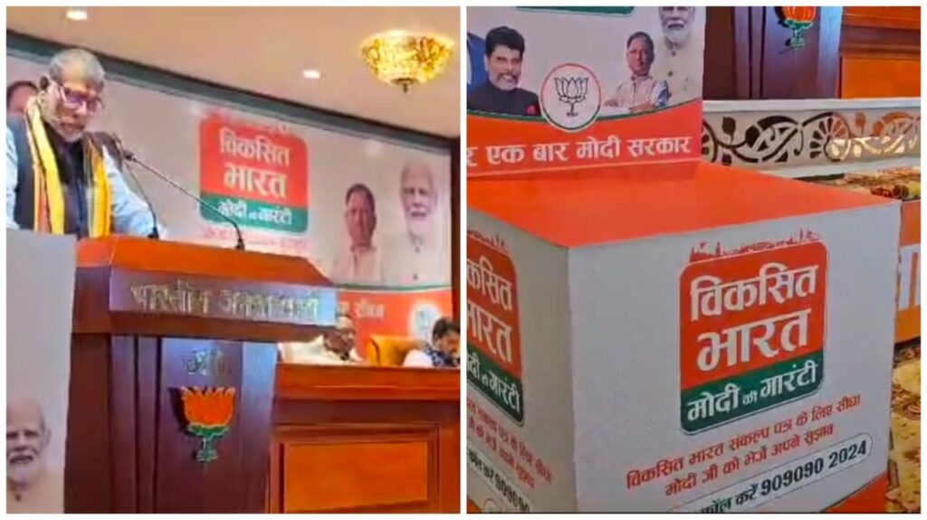 वही कार्यक्रम में मुख्यमंत्री विष्णुदेव साय ने अपने संबोधन में कहा बीजेपी के लिए आज एक महत्वपूर्ण दिन है, आज बीजेपी सुझाव अभियान की शुरुआत कर रही है, लोकसभा का चुनाव नजदीक है, दो बार बीजेपी की सरकार बन चुकी है, प्रधानमंत्री के नेतृत्व में देश ने तेजी से विकास किया है, फिर एक बार मोदी सरकार और इस बार 400 पार हमारा नारा है, 2047 तक विकसित देश बनाना चाहते हैं प्रधानमंत्री मोदी, देश को सोने की चिड़िया बनाने का संकल्प है.