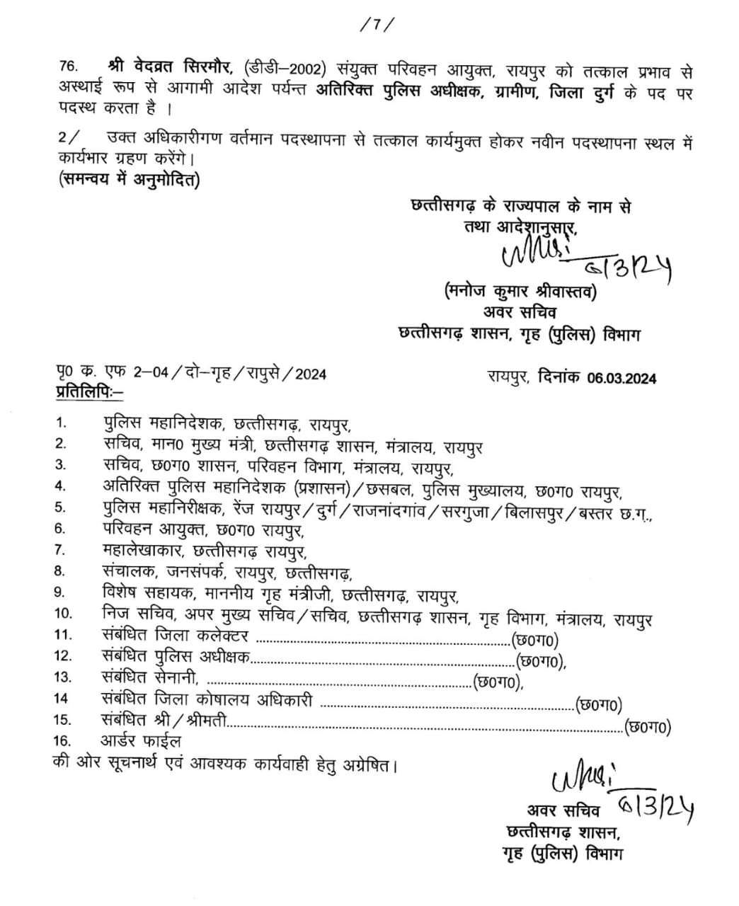 Transfer of officers before implementation of code of conduct in Chhattisgarh