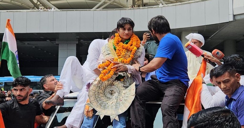 जिसके बाद उनकी मेडल जीतने की उम्मीदों को जोरदार झटका लगा था। और भारत को गोल्ड मेडल का उम्मीद टूट गयी थी। आज ये भारत की बेटी अपने देश वापस लौट चुकी हैं। जहां दिल्ली एयरपोर्ट पर घूम-धड़ाके के साथ उनका भव्य स्वागत किया गया। बता दें विनेश के स्वागत के लिए एक कार्यक्रम बनाया गया है, जिसके तहत वो द्वारका एक्सप्रेसवे से लेकर हरियाणा के चरखी दादरी के बलाली गांव तक रोड शो करेंगी।